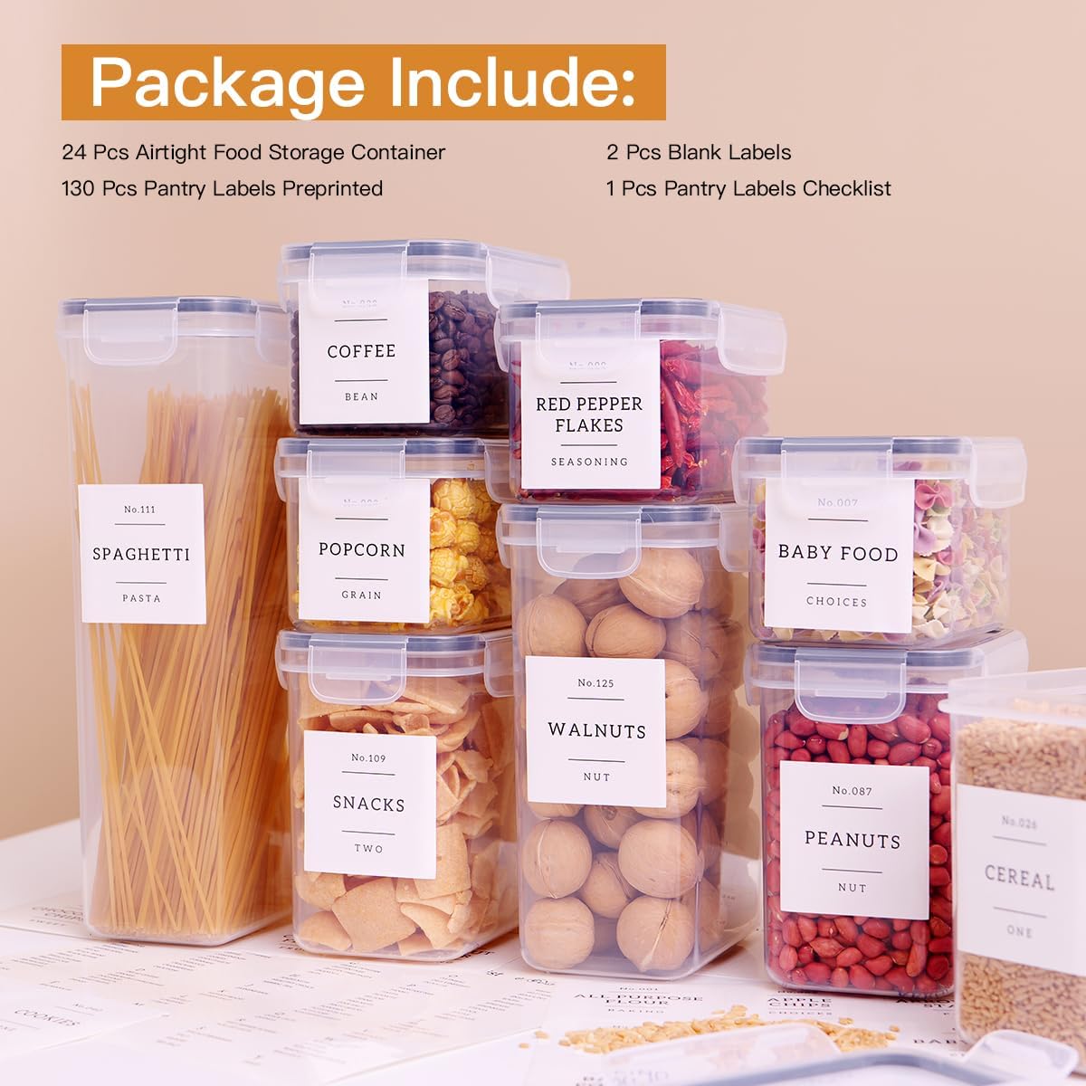 AIRTIGHT FOOD STORAGE CONTAINERS WITH PANTRY LABELS