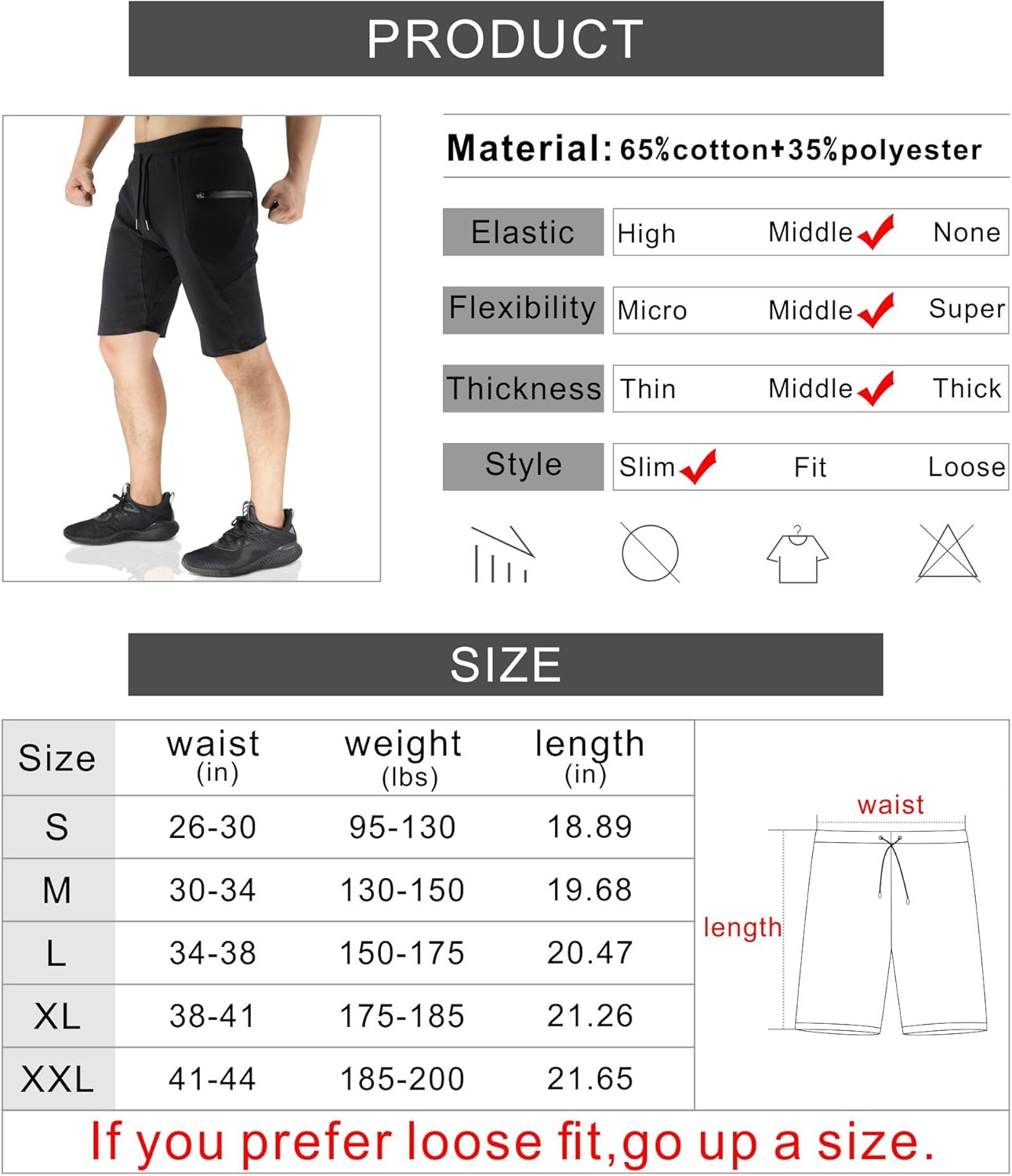 BROKIG Men’s Sidelock Gym Workout Running Sport Shorts with Zipper Pockets