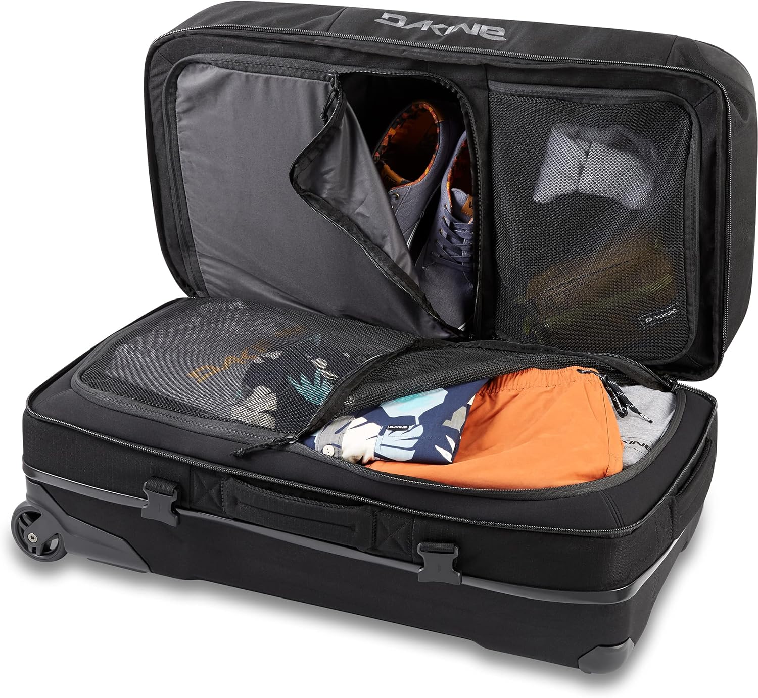 When your next mission calls for a little of everything, the Dakine Split Roller 110L bag makes getting it all there easy. The bag divides organization into a split-level design that gives easy access to multiple large compartments.