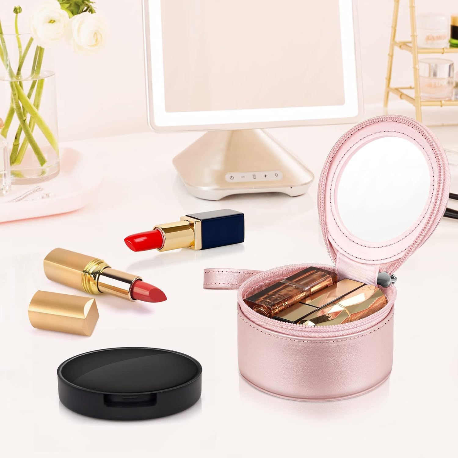 【Unique Design】Cute round bucket shape design. Specially designed for lipsticks and powder foundation for daily touch up makeup. Small size meets all you need for daily use and for travel.(Powder foundation and lipsticks are not included!)